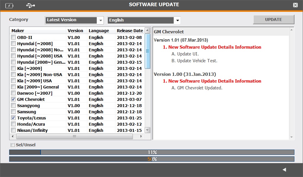 Diagnosis ProgramSelection of Upgrade Maker(available for Individual and Whole Selection)