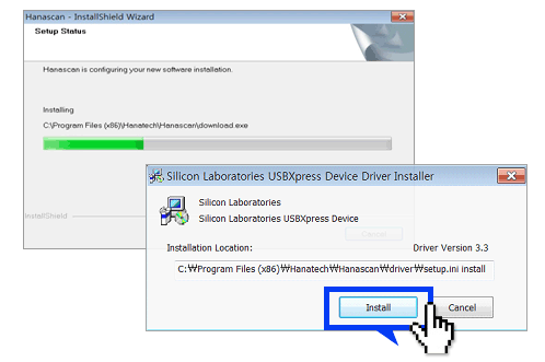 If the driver normally to be recognized, USB Xpress Device shall be identified.